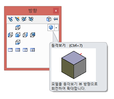 작업화면창에서 스페이스바를 누르면 뷰 방향 선택창이 나옵니다.