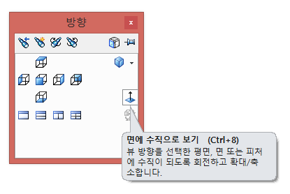 어떤 면에 스케치를 할때 자동으로 수직보기가 안되어,